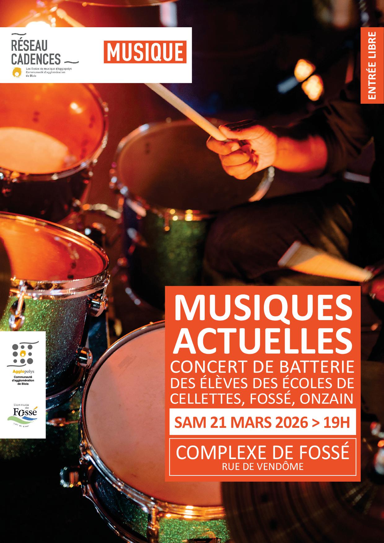 Eric SOUCHU réunit des élèves de Cellettes, Fossé, et Onzain pour une soirée musiques actuelles réunissant 70 batteurs, 14 batteries amplifiées.